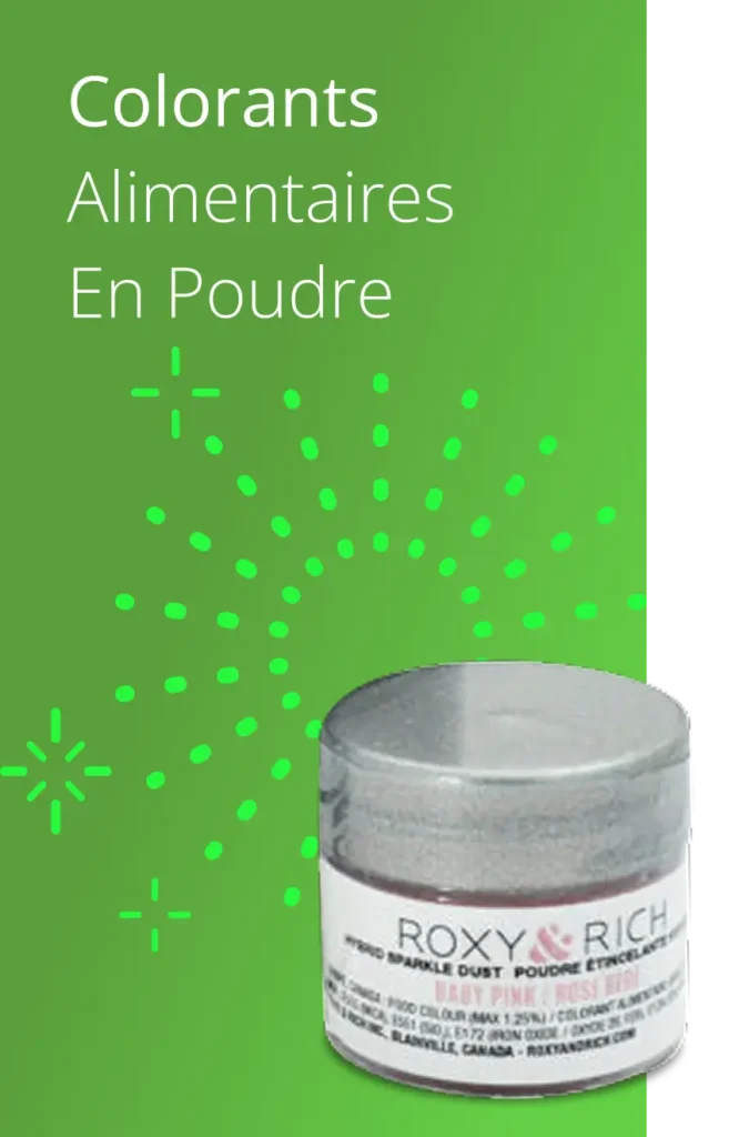 C’est pourquoi Roxy & Rich est fier d’offrir une collection éclatante de colorants alimentaires 100 % naturels, conçus pour suivre le rythme de votre imagination.